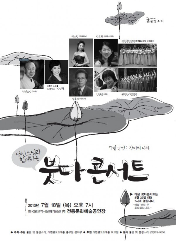 이 불교문화포교콘서트는 2012년 7월 19일 시작하여 올 7월로 어언 한 돌을 맞이