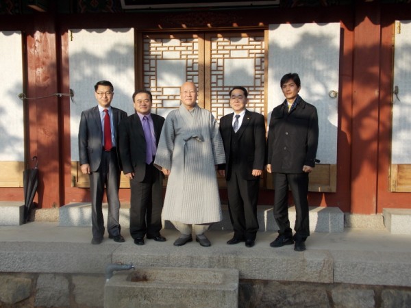 왼쪽부터 조영규(사무총장),전준호(중앙회장),수불스님(부산범어사주지), 한정인(수석부회장),박경수(부산지구회장)