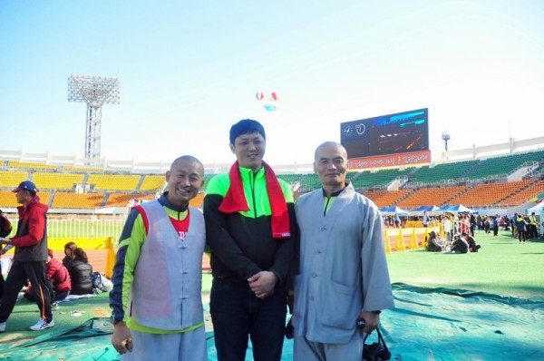 지난 일요일날 창원에 스님모시고 마라톤 다녀왔습니다. (사진첨부) 창원에 승지스님과 지도법사 스님이신 혜문스님 사진입니다