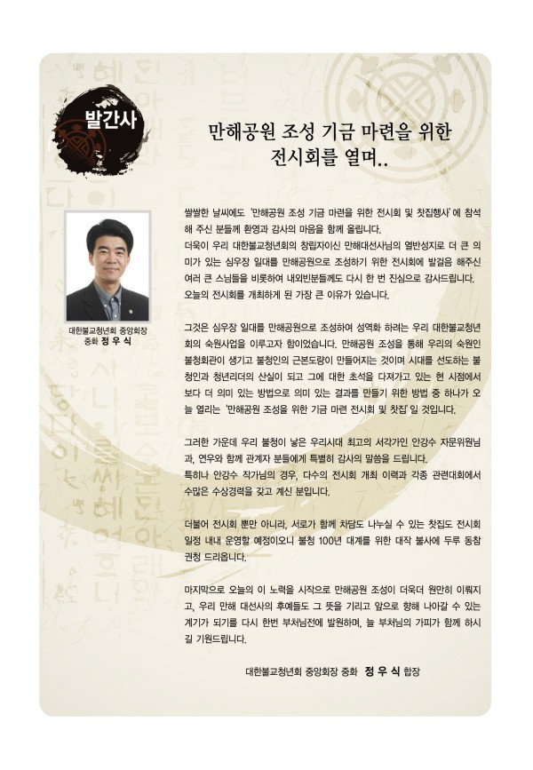 (알림) 만해공원 조성기금 마련을 위한 조각 선서화 전시회