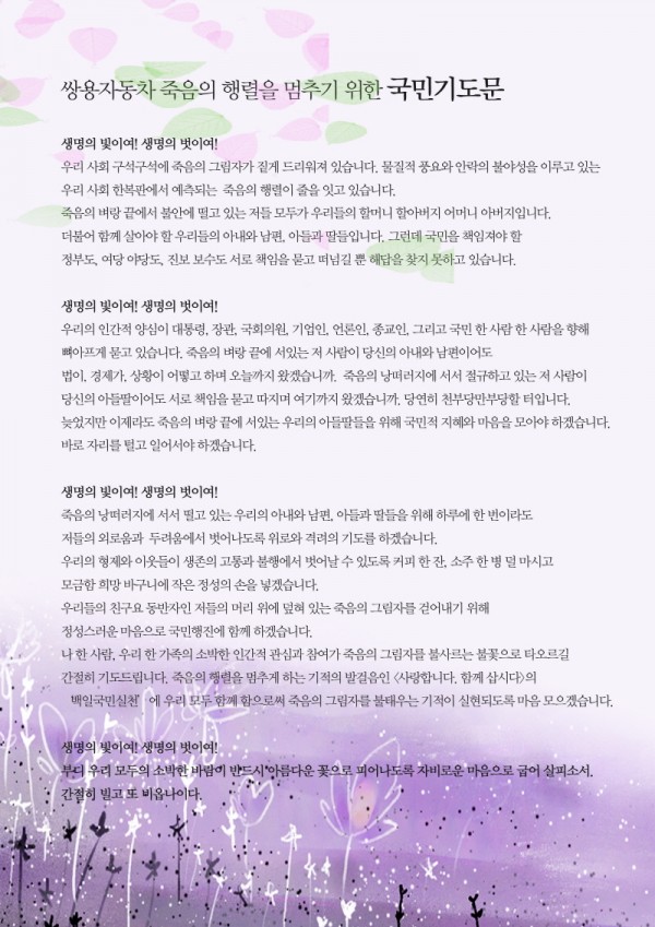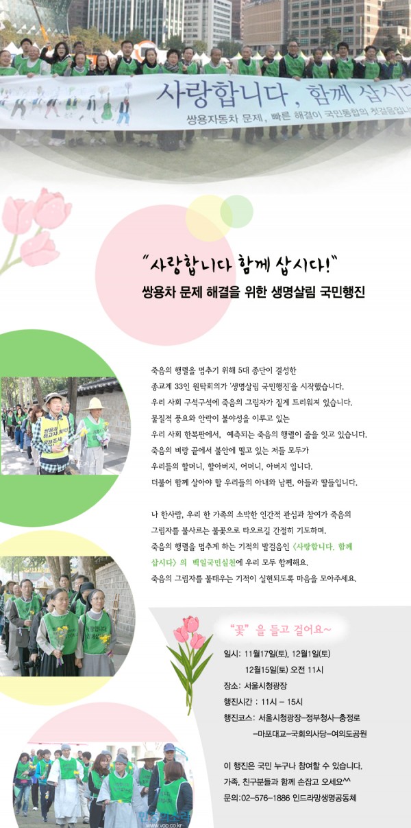 "사랑합니다.함께 삽시다!" 쌍용차 문제 해결을 위한 생명살림 국민행진에 함께 해주세요