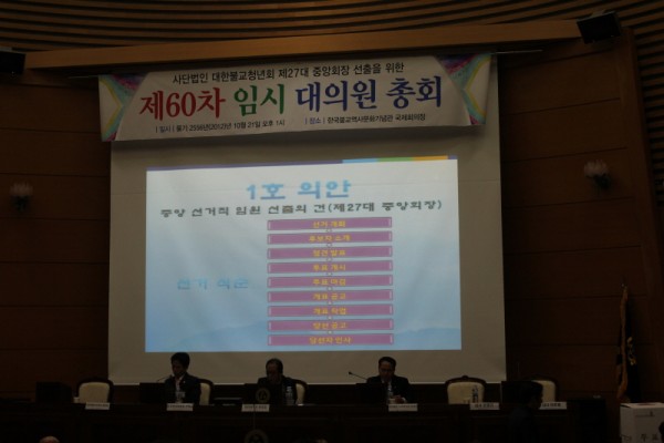 21일에 있었던 제60차 임시 대의원총회, 26일에 있었던 제10회 대원상시상식(본회 특별상 수상),14일에 있었던 제25차 서울지구 불청대회,28일에 있었던 부산지구 범어사청년회 창립기념 청년불자전진대회를 비롯하여, 본회 부총재스님이 회주스님으로 계시는 도선사108산사 순례기도회 6주년기념 대법회 및 영산재, 본회가 이사단체로 가입되어있는 한국청소년단체협의회 주최의 제18대 대선후보 초청 청소년정책 연구세미나 등, 이외에도 각 지구지회에서의 크고작은 행사들이 10월한달을 더욱더 풍성하게 가꿔 주었습니다.