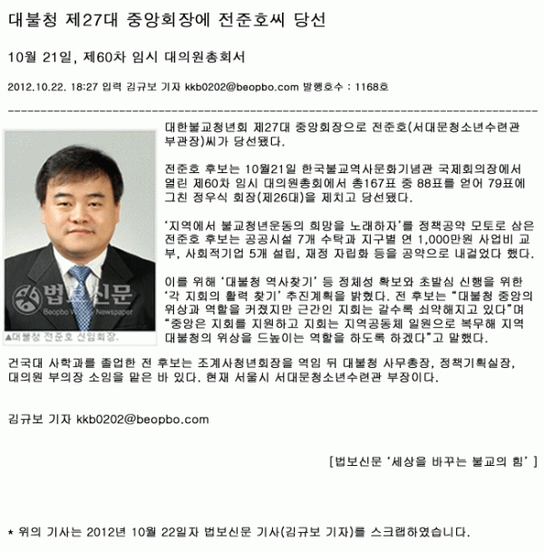 [법보신문] 대불청 제27대 중앙회장에 전준호씨 당선