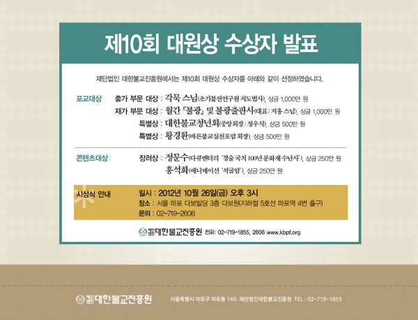 [경축] 제10회 대원상 시상, 대한불교청년회 특별상 수상