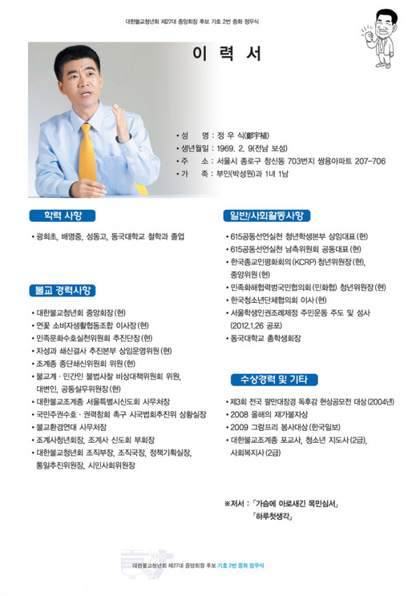 제27대 중앙회장 후보 기호2번 중화 정우식 걸어온 길과 인사말