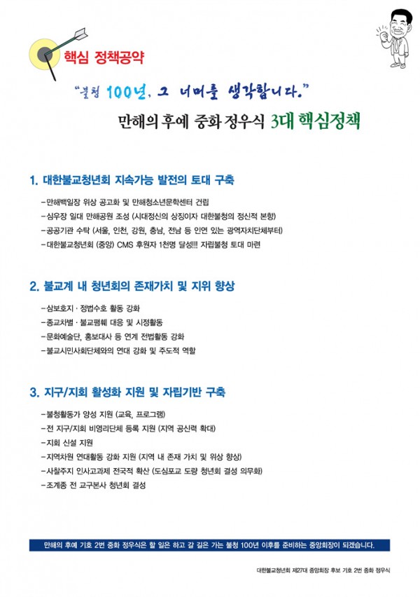 [기호2번 중화 정우식 후보] 대한불교청년회 제27대 3대 핵심 정책