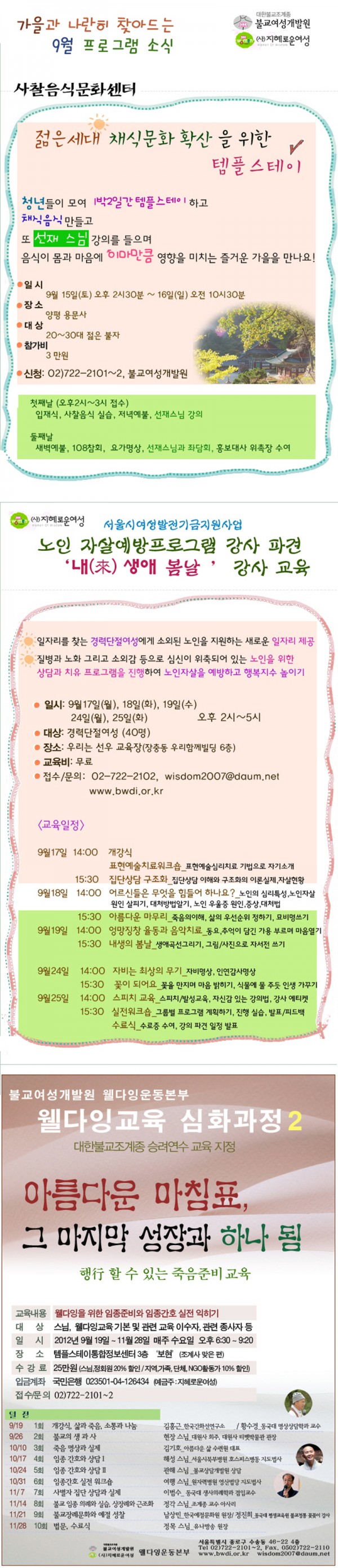 [교육] 웰다잉심화교육/ 2030사찰음식캠프 / 노인자살예방 강사양성 교육