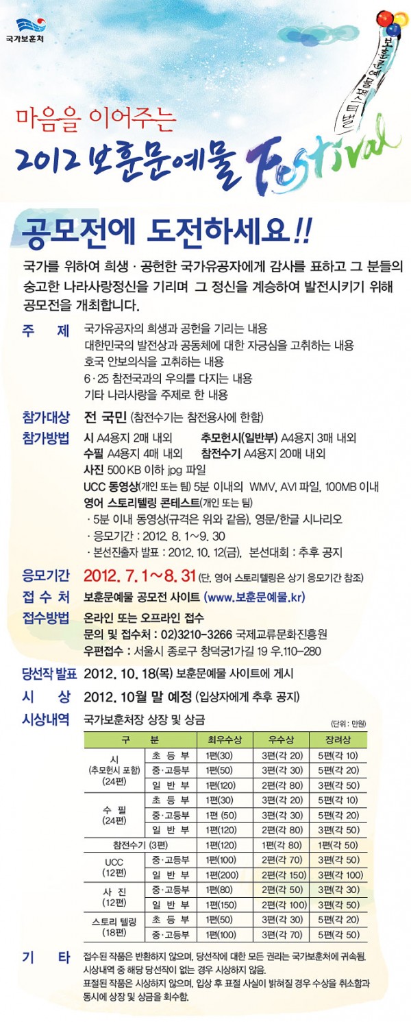 [청소년] 2012년도 보훈문예물 페스티벌 공모전