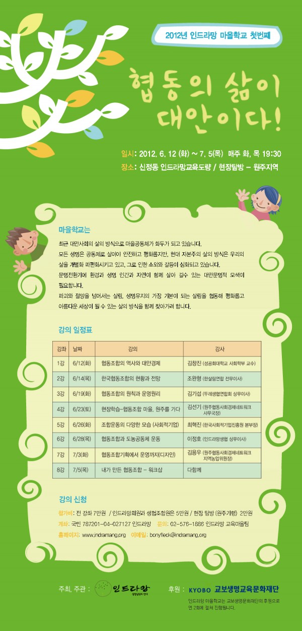 협동의 삶이 대안이다. 2012년 인드라망 마을학교 첫번째