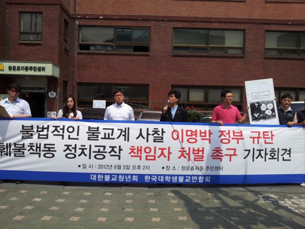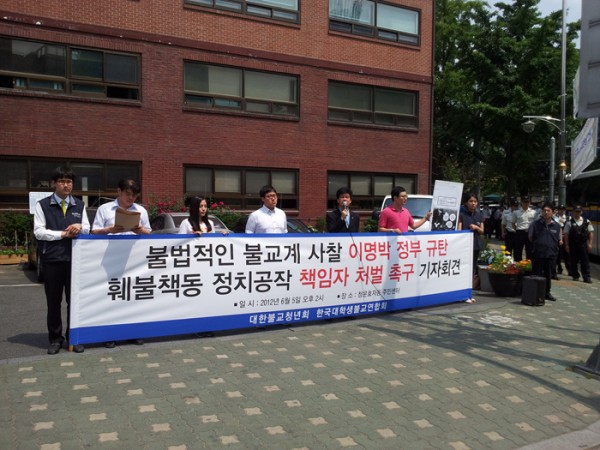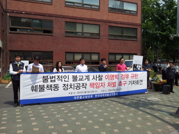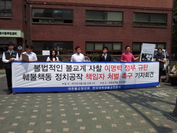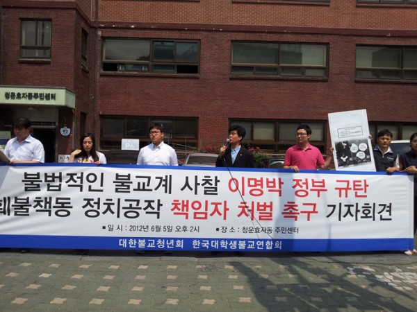 대불청과 대불련은 6월5일 오후 2시 청와대 앞 청운효자동 주민센터에서 긴급 기자회견을 열고 “이명박 정부가 헌법을 유린하고 불교계를 탄압하는 불법적인 사찰과 훼불을 책동하는 정치공작을 진행했다”며 “이명박 대통령은 책임자 처벌과 함께 불교계에 사과하라”고 촉구했다.