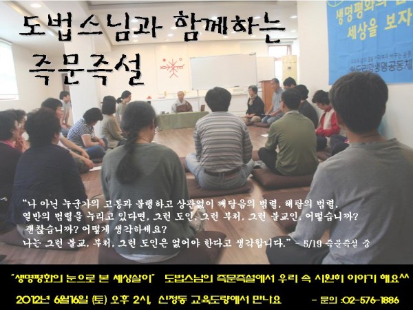 [6월16일(토) 오후2시] 도법스님과 함께하는 즉문즉설에서 우리 속 시~원히 이야기해요