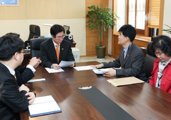 2. 4월 23일 월요일 대한불교청년회 정우식 중앙회장님은 김영배 성북구청장님을 만나, 심우장의 만해역사문화공원화 하는 내용을 바탕으로 진행 방법이나 과정에 관하여 이야기를 나누었습니다. 김영배 성북구청장님 역시 성북구에서 으뜸가는 곳으로 심우장을 꼽으시며, 많은 격려와 관심을 표해주셨습니다.