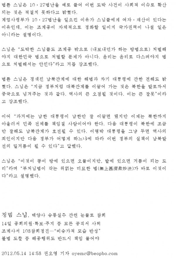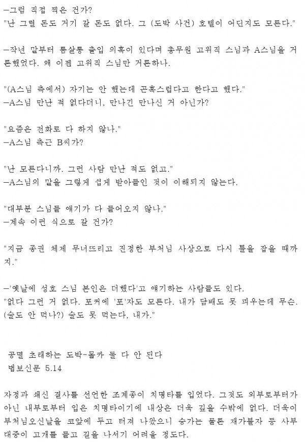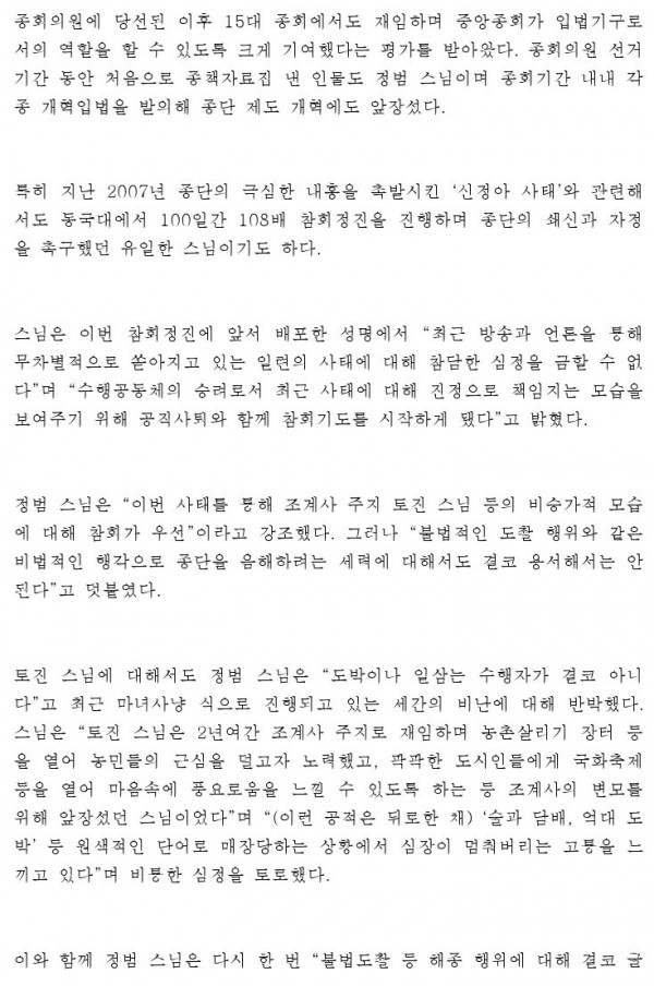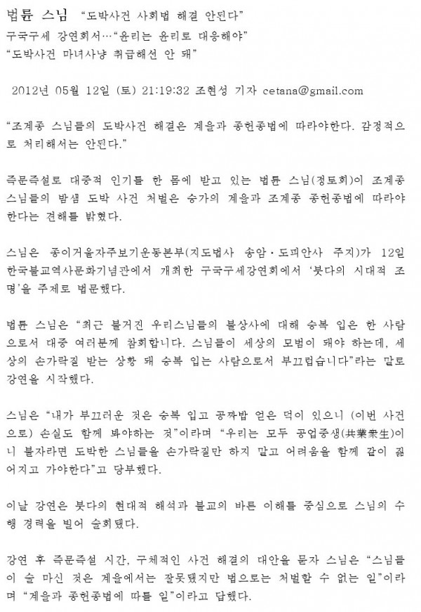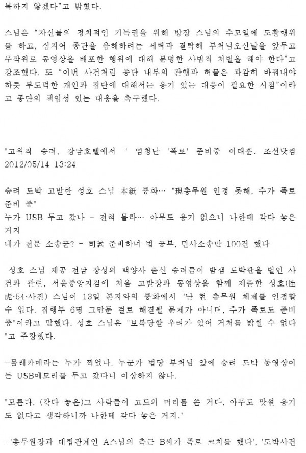 최근 교계및 언론에 보도된 자료들인데 불자분들이 참고해 보았으면 합니다.