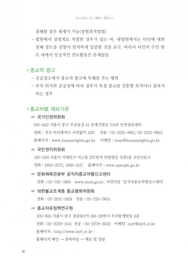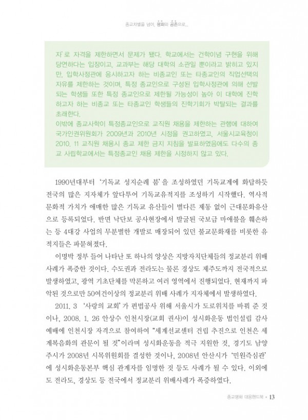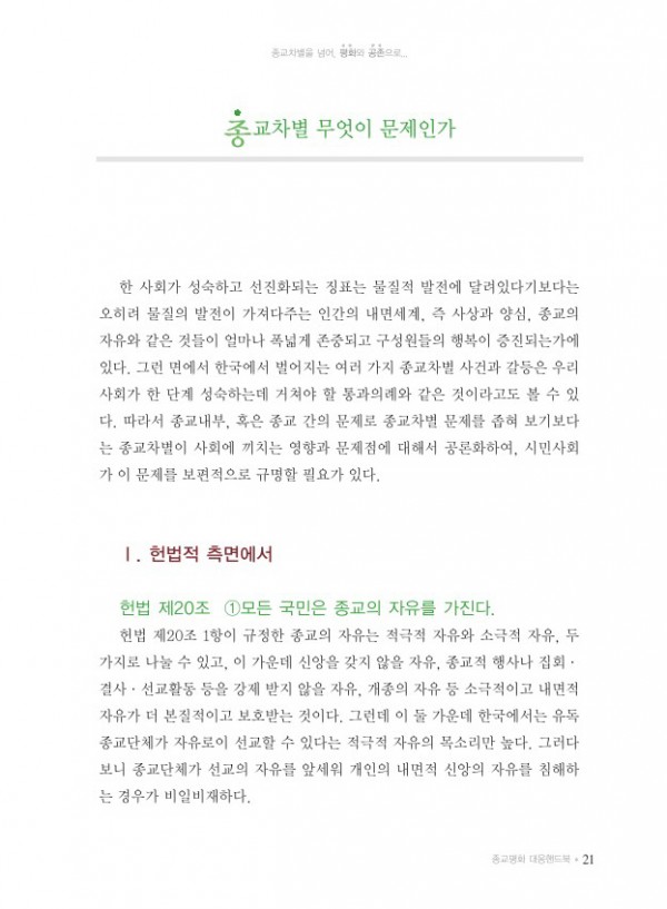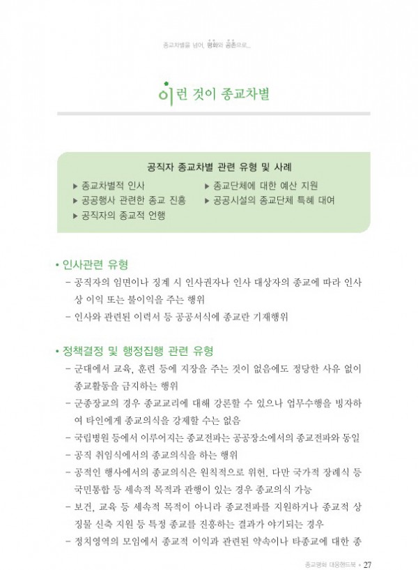종교차별을 넘어 평화와 공존으로 (종교평화 대응핸드북)