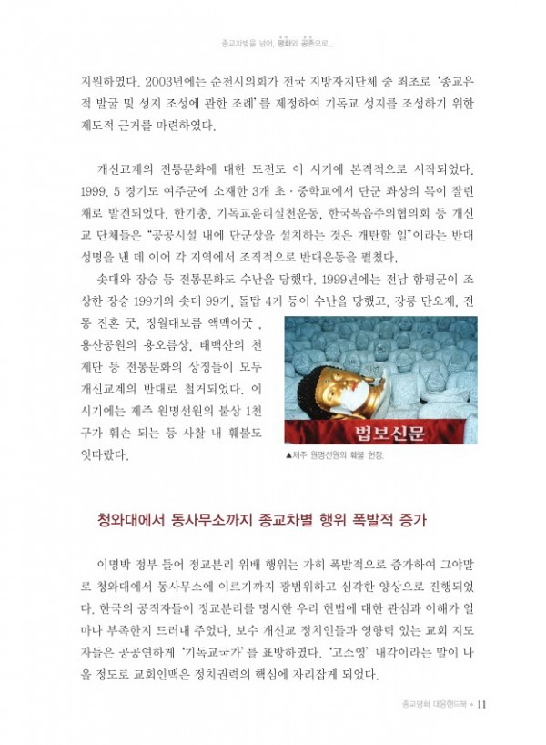 대한불교조계종 자성과쇄신결사추진본부 종교평화위원회에서는 종교차별을 넘어 평화와 공존으로 라는 종교평화 대응핸드북 자료를 발간 하였습니다.