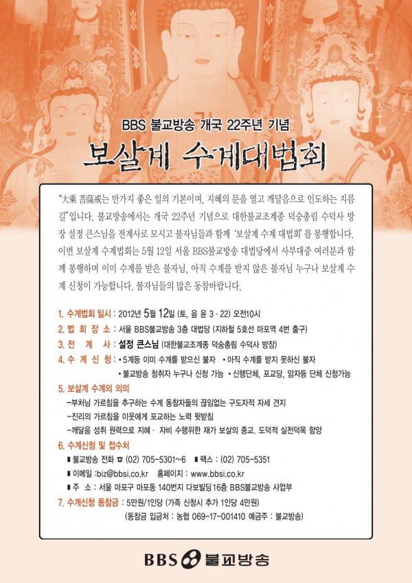 -불교방송 개국22주년 기념 계기로 BBS 고정 청취자 일반 불자 대상 보살계