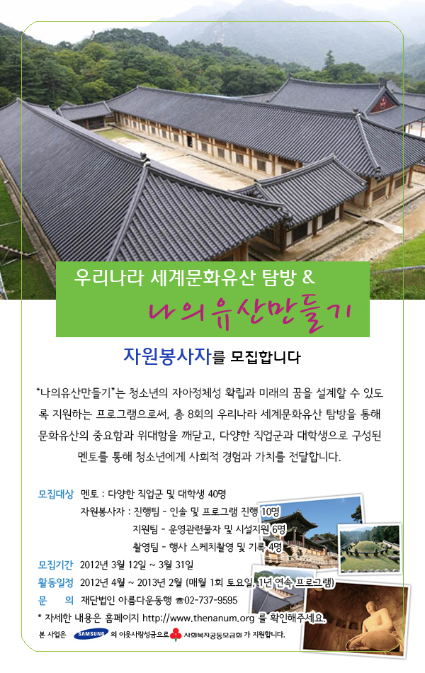 (안내) 아름다운 동행에서 [우리나라 세계문화유산 탐방 &“나의유산만들기