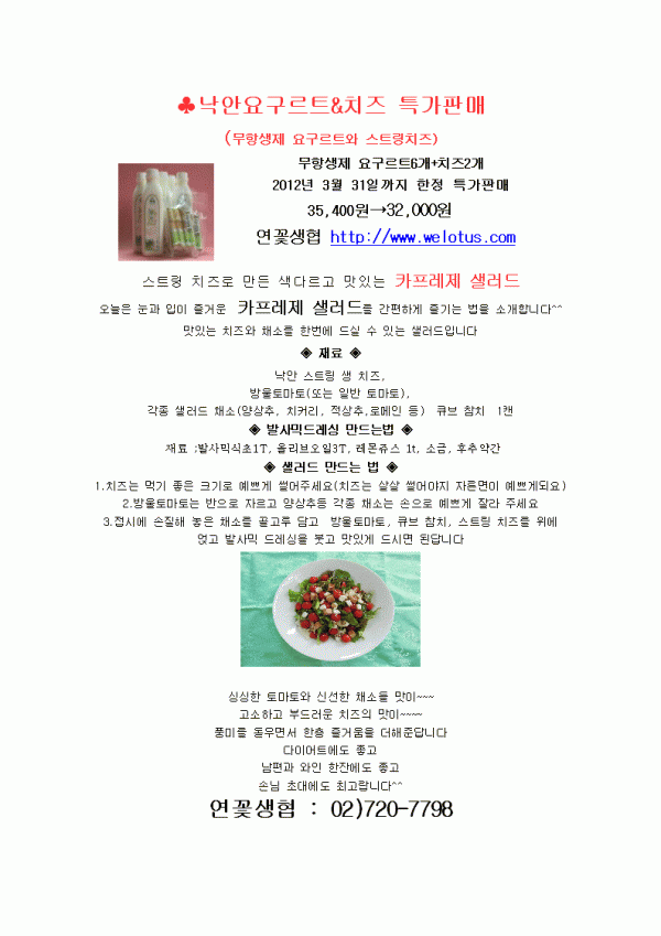 더불어서 3월 연꽃생협의 야심찬 특판상품 요구르트을 소개하오니