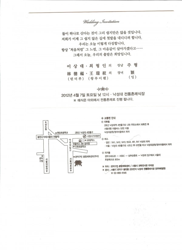 2. 장소: 관악예절원 (서울시 관악구 봉천동 225번지 낙성대 전통혼례식장)