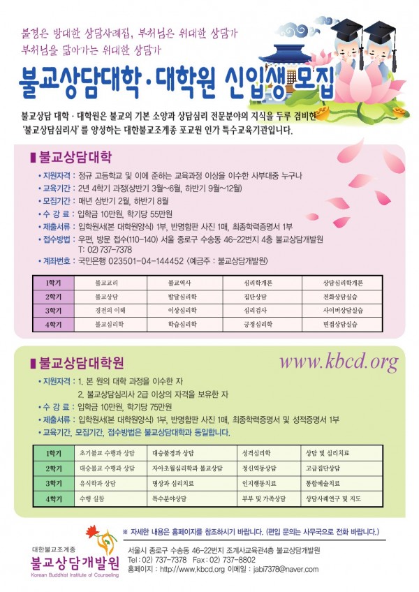 2012학년도 대한불교조계종 불교상담대학,대학원 신입생 모집