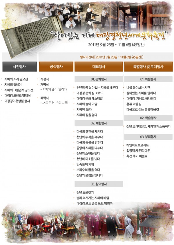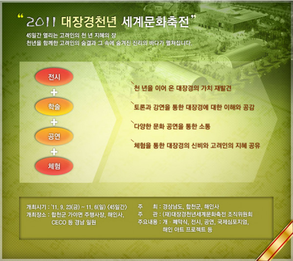 2011년 대장경천년 세계문화축전이 2011년 9월23일(금)부터 11월 6일까지