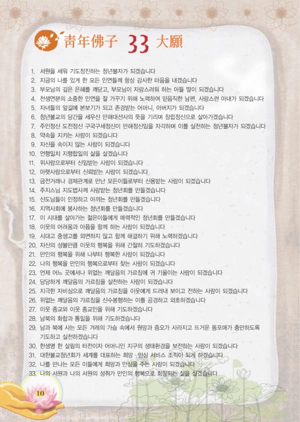 33. 나의 서원과 나의 서원의 성취가 만인의 행복으로 회향되는 삶을 살겠습니다