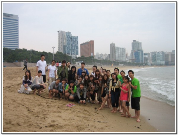 해운대에서 1시간...넘실대는 파도와 모래사장...다들 신발을 벗고 바닷물에 다리를 담그더군요.