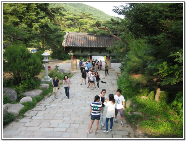 범어사 일주문을 지나며..맨 앞에 분이 동국대 유학중인 몽고 탬부랠스님