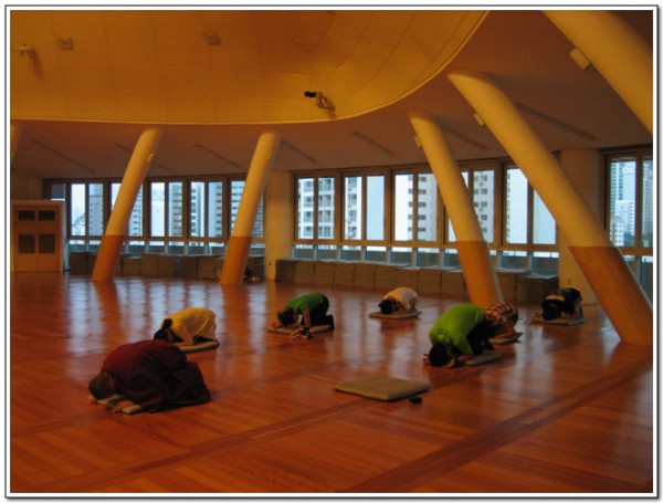 108배하는 모습...맨 앞 탬부랠스님...이후 참선 20분...선체조 20분을 진행하였습니다.