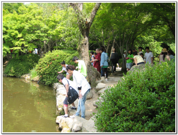 불국사 경내 연못에서 잉어를 보고 있는 중...