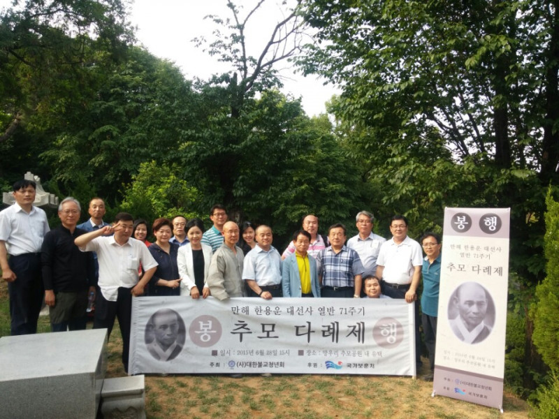 지난 6월 28일 15시, 구리시 망우 공원묘지에서 만해 대선사 71주기 추모 다례재가 봉행되었습니다. 만해스님을 추모하고 그 뜻을 받들어 어려운 현실에서 다시금 청년불자의 역할을 고민하고 정진을 결의하는 소중한 시간이었습니다. 참석해주신 덕신스님, 선진규 배영진 고문 이하 모든분들께 깊은 감사의 말씀을 올립니다.