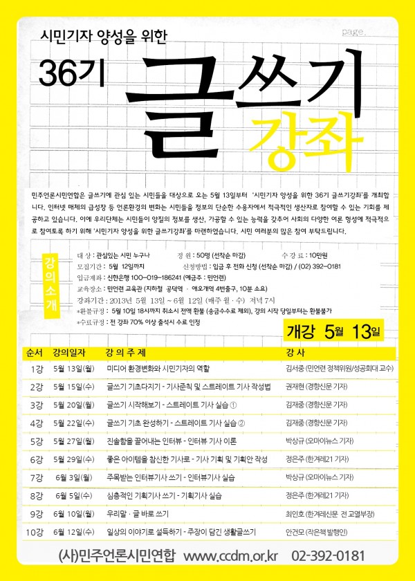 [민언련]시민기자 양성을 위한 <36기 글쓰기 강좌>