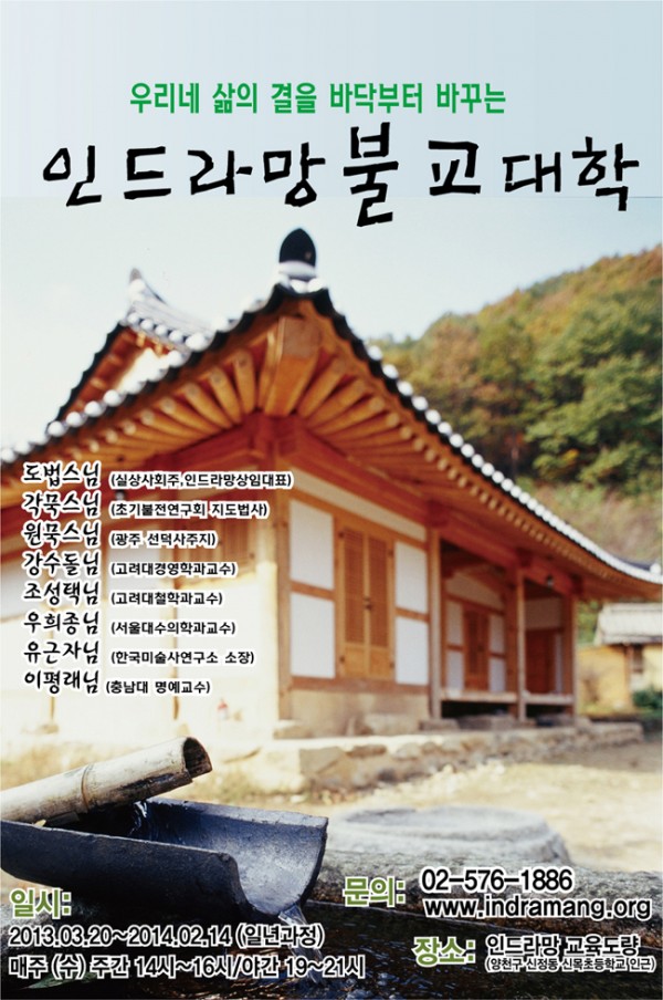 인드라망생명공동체 2013년 교육강좌(불교대학, 불교귀농학교, 협동조합학교)