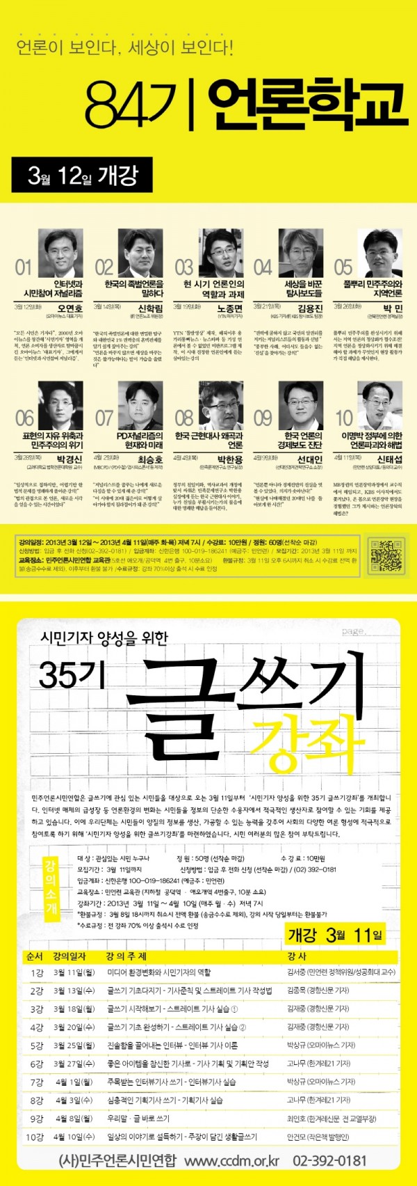 [민언련] 84기 언론학교 & 35기 글쓰기 강좌 안내