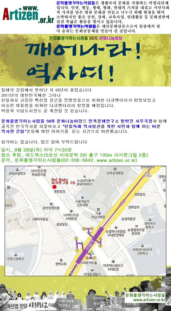 문화를생각하는사람들 제50차 문화나눔마당 깨어나라! 역사여!